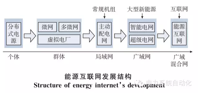 能源互联网以超级电网为主干网,以分布式能源及微网等单元为局域网,以能源路由器为智能控制单元,通过局域自治消纳和广域对等互联,可以最大程度适应分布式可再生能源接入的动态特性,而分散协同的管理调度可实现系统供需动态平衡, 提高能源利用效率。