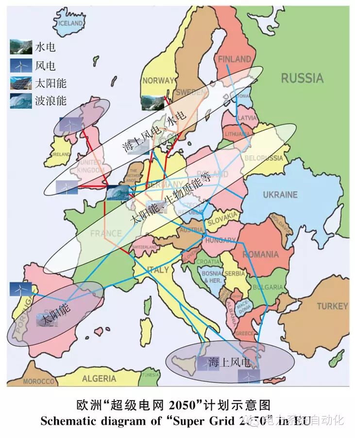 超级电网是欧洲第一个专门用于传输可再生能源电力的网络,利用空间扩张平滑和减小可再生能源发电随时间变化而产生的波动,提高了可再生能源的信用度和经济性,不仅可以平衡整个欧洲大陆的电力需求,而且能够及时把所产生的能源以电力形式传输到邻近国家,进一步提高能源的利用率。而日本在福岛核事故后亦提出建设“亚洲超级电网”计划,提议采用超高压直流输电技术将蒙古境内的风能、太阳能等可再生能源电力输送至中国、日本、韩国等电力需求大国。